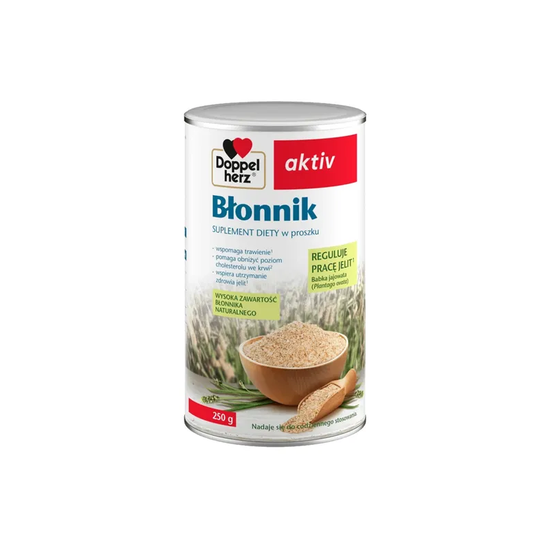 Doppelherz Aktiv Błonnik - to suplement diety w postaci proszku, który zawiera wysoką zawartość błonnika naturalnego pochodzącego z nasion babki jajowatej. Produkt przeznaczony dla osób dorosłych.