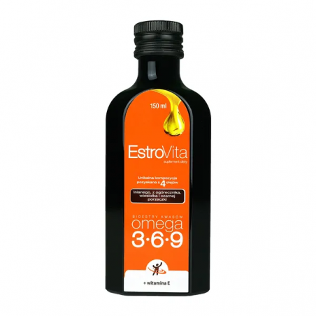 EstroVita - suplement diety z kwasami tłuszczowymi omega-3, -6, -9, które zostały wyizolowane z mieszaniny czterech olejów roślinnych (lnianego, z wiesiołka, ogórecznika, czarnej porzeczki). Zawarte w preparacie roślinne kwasy tłuszczowe występują w formie monocząsteczek (estrów etylowych). Produkt przeznaczony dla osób dorosłych.