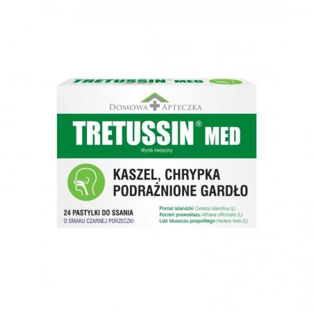 Tretussin Gardło to wyrób medyczny w pastylkach do ssania o smaku czarnej porzeczki, przeznaczony dla dzieci powyżej 4. roku życia i dorosłych, do stosowania podczas kaszlu, chrypki i podrażnionego gardła. Zawarty w nim porost islandzki łagodzi dolegliwości bólowe, pokrywając błonę śluzową ochronnym, nawilżającym filmem.