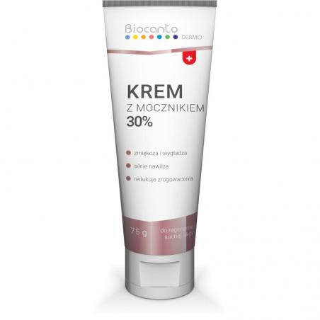 Krem z mocznikiem 30% intensywnie regeneruje suchą skórę stóp i łokci. Zapobiega rogowaceniu, zmiękcza i łagodzi podrażnienia. Polecany dla diabetyków.