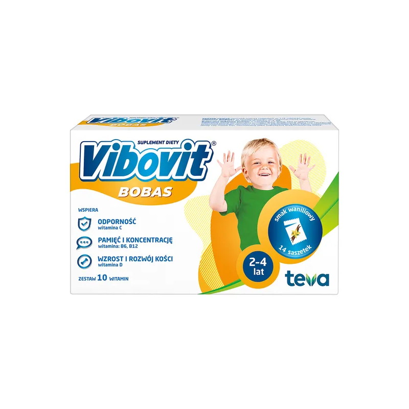 Vibovit Bobas - suplement diety w formie proszku, przeznaczony dla dzieci w wieku 2-4 lat.