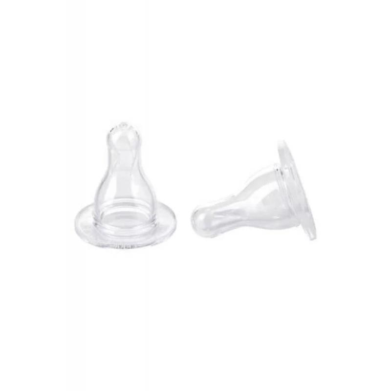 Soki owocowe lub herbatki mogą pozostawiać na smoczku osad lub przebarwienia, co nie zmienia jego właściwości. Smoczka nie należy podgrzewać w mikrofali oraz myć w zmywarce, gdyż detergenty oraz silne środki czyszczące mogą spowodować uszkodzenie produktu. Można go dezynfekować i wyparzać. W opakowaniu 2 sztuki. Przed pierwszym użyciem smoczek wyczyść i zdezynfekuj we wrzącej wodzie. Po każdym użyciu oczyść smoczek z resztek pokarmu, umyj pod bieżącą wodą z dodatkiem delikatnego płynu, dokładnie wypłucz, a następnie zdezynfekuj. Nie zalecamy mycia smoczka w zmywarce, gdyż detergenty lub środki czyszczące mogą spowodować uszkodzenie produktu. Do czyszczenia nie używaj środków antybakteryjnych. Smoczek można dezynfekować w sterylizatorze parowym/elektrycznym oraz wyparzać. Gotowanie oraz twarda woda mogą powodować powstawanie osadu. Przed każdym użyciem sprawdź smoczek. Rozciągnij go we wszystkich kierunkach. Szczególnie dokładnie sprawdzaj smoczek, gdy dziecko ma zęby. Wyrzuć, gdy zauważysz na smoczku pierwsze oznaki uszkodzenia lub osłabienia. Nie dokręcaj nakrętki ze smoczkiem zbyt mocno, ponieważ smoczek może nie odpowietrzać się właściwie. Nie dziurkuj i nie powiększaj otworów smoczka, może to spowodować jego zniszczenie. Nie zostawiaj smoczka do karmienia w miejscu nasłonecznionym lub gorącym oraz w środkach dezynfekujących („roztwór sterylizacyjny”) na czas dłuższy od zalecanego, ponieważ może to spowodować osłabienie smoczka. Ze względu na bezpieczeństwo i higienę zalecamy wymianę smoczka na nowy co 1-2 miesiące. Ważne! Ze względów bezpieczeństwa, podczas karmienia dziecko powinnobyć pod nadzorem osoby dorosłej. Nigdy nie używaj smoczka do butelki jako smoczka do uspokajania. Ciągłe i przedłużone ssanie płynów może powodować próchnicę. Zawsze sprawdzaj temperaturę pokarmu przed karmieniem. Uwaga! Produkt nie jest zabawką.