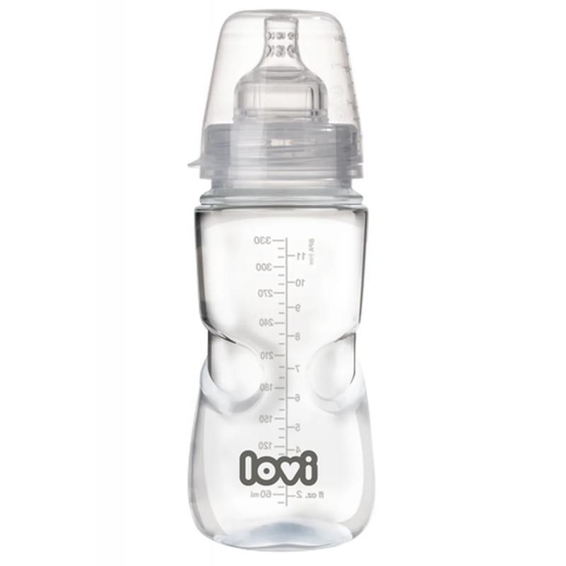 Butelka LOVI Medical+ 330 ml jest bezpieczna dla dzieci karmionych piersią dzięki zastosowaniu dynamicznego smoczka o niejednorodnych warstwach silikonu, który nie zaburza odruchu ssania i wymaga aktywnej pracy mięśni warg i języka. Butelka posiada również system odpowietrzania Super Vent, który minimalizuje ryzyko wystąpienia kolki, oraz profilowany kształt ułatwiający trzymanie.