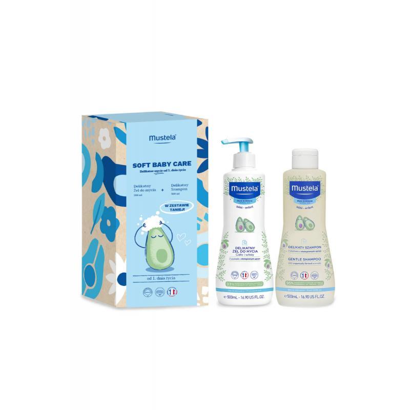 Mustela Soft Baby Care Delikatna Pielęgnacja to wegański zestaw do codziennego mycia ciała i włosów dla noworodków, niemowląt i dzieci już od dnia narodzin, w tym wcześniaków. Obydwa produkty zawierają 93% składników pochodzenia naturalnego oraz ekstrakt z organicznego awokado (Avocado Perseose®), który wzmacnia barierę ochronną skóry i neutralizuje wysuszające działanie wody.