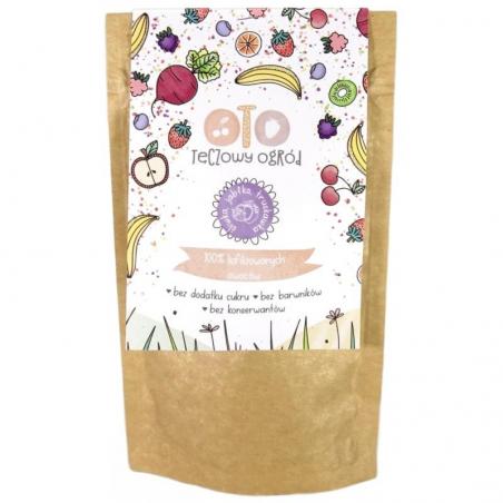 Śliwka, jabłko, truskawka liofilizowana Tęczowy Ogród OTO to sproszkowane owoce, które posiadają niezwykle intensywny smak, zapach i kolor. Bo w OtoLandii sezon na owoce trwa cały rok! Dzięki metodzie liofilizacji czyste, w pełni naturalne owoce zamykane są w kolorowym pyle odpowiednim jako dodatek do deserów, musli lub innych dań na słodko.