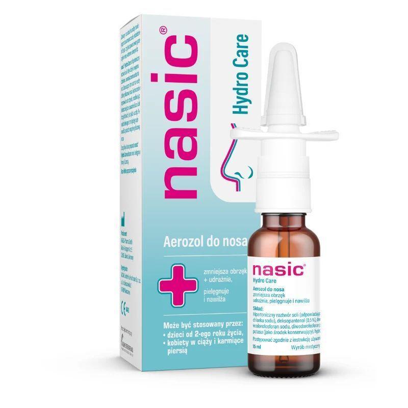 Nasic Hydro Care to wyrób medyczny w aerozolu dla dorosłych i dzieci od 2. roku życia. Zawiera hipertoniczny roztwór soli oraz dekspantenol. Wspomaga leczenie kataru siennego i zatkanego nosa.