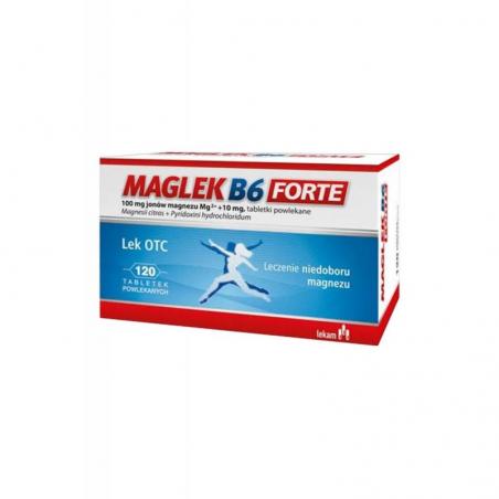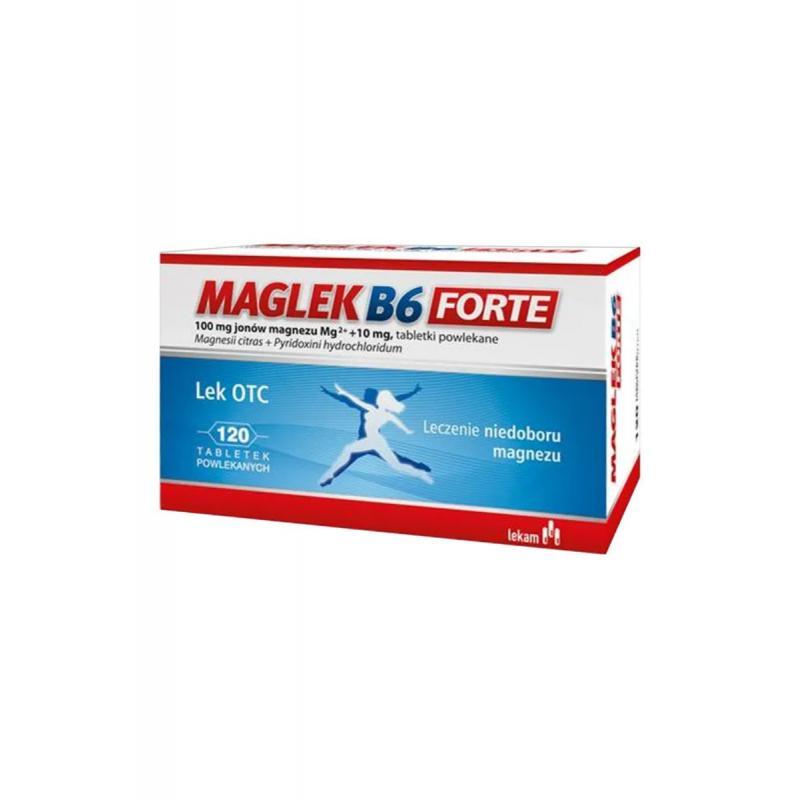 Maglek B6 Forte to lek stosowany w profilaktyce niedoboru magnezu i witaminy B6, który może objawiać się nerwowością, zmęczeniem, drganiem powiek i skurczami mięśni. Lek zawiera cytrynian magnezu (100 mg jonów) oraz witaminę B6 (10 mg), która zwiększa wchłanianie magnezu i jest przeznaczony dla dorosłych oraz dzieci od 6. roku życia.