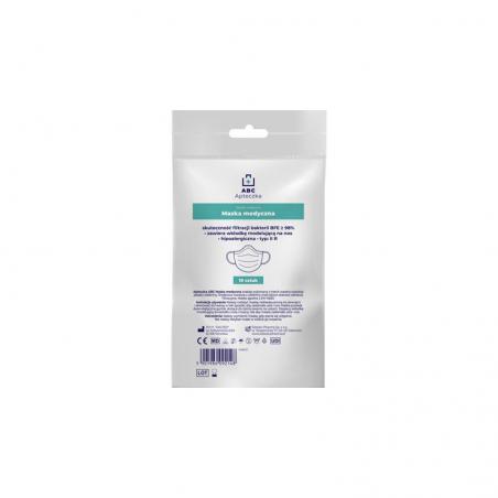 Apteczka ABC Maska medyczna (Typ II R) to wyrób medyczny wykonany z trzech warstw włókniny. Maska jest hipoalergiczna, posiada wkładkę modelującą na nos i spełnia normę EN 14683.