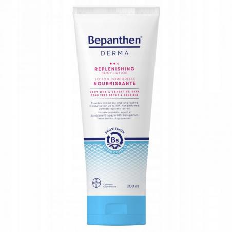 Bepanthen Derma Balsam Głęboko Odżywczy to kosmetyk dla całej rodziny, przeznaczony do codziennej pielęgnacji bardzo suchej, szorstkiej i skłonnej do atopii skóry. Balsam na bazie kompleksu z prowitaminą B5 (pantenol), niacynamidem oraz masłem shea i olejem arganowym, zapewnia natychmiastowe i 48-godzinne nawilżenie i wspiera naturalny mikrobiom skóry.