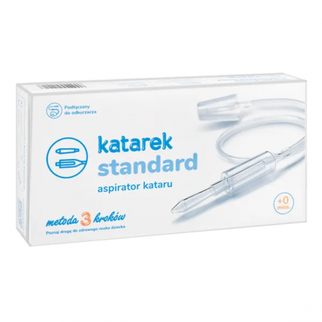 Katarek Standard to bezpieczny i higieniczny wyrób medyczny przeznaczony dla niemowląt, dzieci, a także osób niepełnosprawnych i obłożnie chorych. Urządzenie pozwala na szybkie i skuteczne usunięcie zalegającej wydzieliny z nosa.