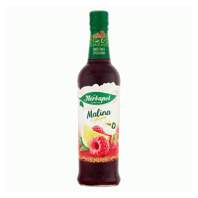 Suplement diety w postaci syropu o smaku malinowo – cytrynowym, pasteryzowany.