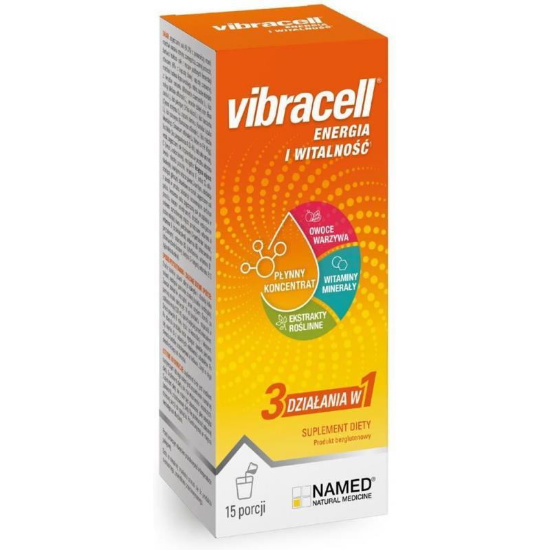 Vibracell to płynny, multiwitaminowy suplement diety - wysoka zawartość witamin pochodzących ze skoncentrowanych soków z owoców i warzyw oraz wyciągów roślinnych z dodatkiem selenu, L-karnityny i mleczka pszczelego.