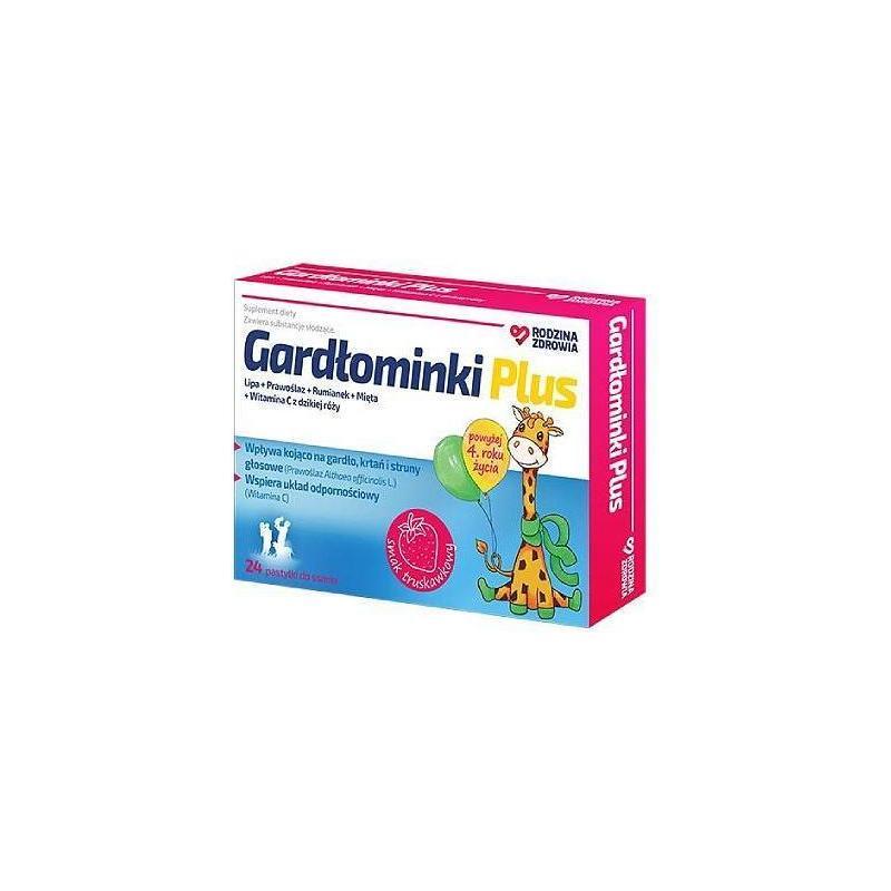 Rodzina Zdrowia Gardłominki Plus to suplement diety w postaci pastylek do ssania o smaku truskawkowym, słodzony m.in. glikozydami stewiolowymi ze stewii. Został opracowany dla wsparcia gardła, krtani i strun głosowych (prawoślaz, mięta pieprzowa) oraz dla zachowania zdrowia układu oddechowego (rumianek) i wsparcia prawidłowego funkcjonowania układu odpornościowego (witamina C, pochodząca z naturalnego źródła jakim jest owoc dzikiej róży).