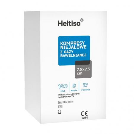 Wyrób medyczny jednorazowego użytku przeznaczony do sterylizacji. Wyrób niejałowy można stosować do opatrywania uszkodzonej skóry jako bariera mechaniczna. Kompresy 8–warstwowe, 17-nitkowe.