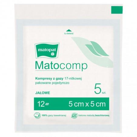 Jałowe kompresy z gazy Matocomp to materiał opatrunkowy znajdujący zastosowanie w trakcie zabiegów ambulatoryjnych i operacyjnych. Służą do pochłaniania płynów. Dzięki wyjałowieniu są wolne od bakterii i innych mikroorganizmów.