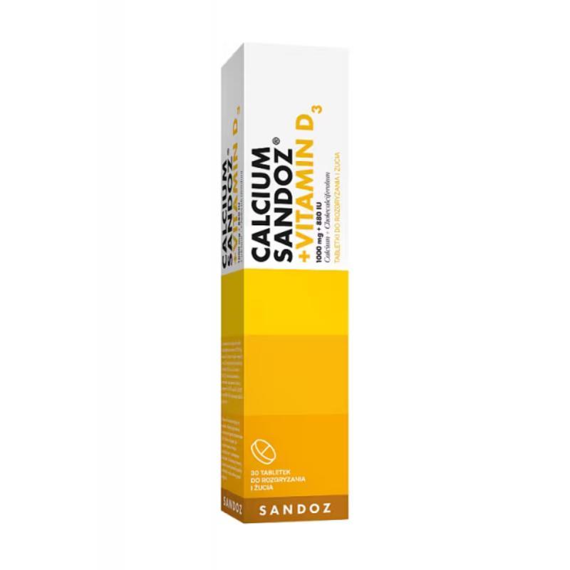 Calcium Sandoz + Vitamin D3 zawiera wapń i witaminę D3.