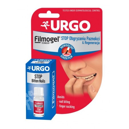 Urgo Filmogel® Stop Obgryzaniu Paznokci & Regeneracja to przezroczysty, gorzki film, który dzięki swojej formule zapobiega obgryzaniu paznokci i ssaniu palców, pielęgnuje i chroni paznokcie oraz skórki wokół paznokci. Dodatkowo wzmacnia i regeneruje paznokcie. Zawiera w składzie Bitrex, który jest uznawany za najbardziej gorzką substancję na świecie, której smak skutecznie zniechęca do obgryzania paznokci.