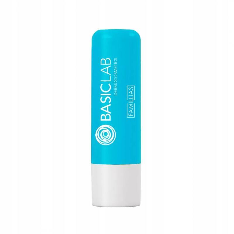 BasicLab Pomadka ochronna koi. Olej rycynowy i witamina E to składniki, które odżywiają i regenerują. Usta stają się gładkie, miękkie i pełne połysku.