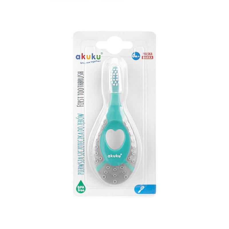 Szczoteczka Akuku to idealny wybór dla najmłodszych dzieci (0-2 lata). Delikatne włókna czyszczą zęby i masują dziąsła, a specjalna konstrukcja zapobiega przypadkowemu zranieniu.