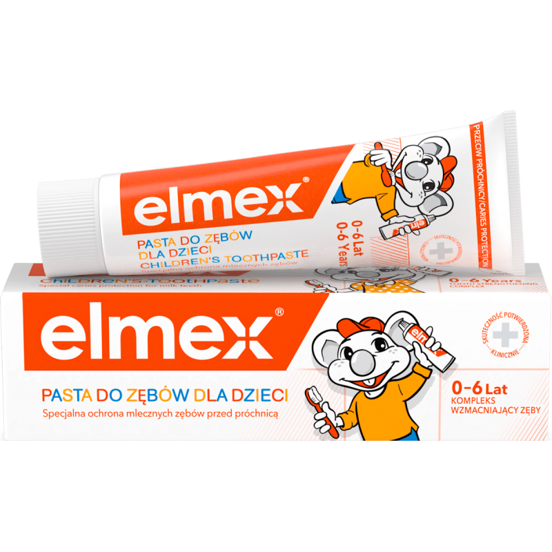Elmex Pasta do zębów dla dzieci 0-6 lat z technologią Neo-Aminex chroni przed próchnicą i odbudowuje szkliwo. Zawiera 1000 ppm fluoru i tworzy barierę ochronną.