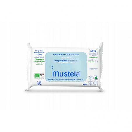 Mustela Kompostowalne chusteczki nawilżające z wodą to artykuł higieniczny dla niemowląt od pierwszych dni życia, którego 99% składników pochodzenia naturalnego. Chusteczki delikatnie oczyszczają skórę twarzy, dłoni i okolic pieluszkowych, pozostawiając ją nawilżoną, wygładzoną i miękką w dotyku.