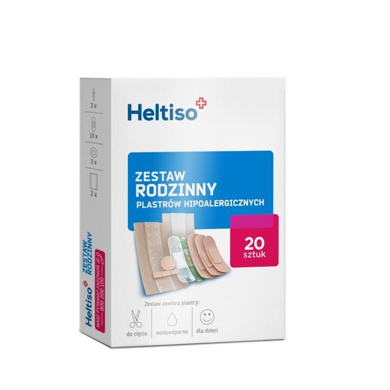 Zestaw plastrów rodzinnych jest idealny do domowej apteczki. Zawiera 20 plastrów z opatrunkiem na 4 różnych materiałach: foli PE i PU, włókninie i tkaninie; o różnych wymiarach, pozwalających dostosować je do wielkości skaleczeń. Plastry pozwalają skórze oddychać, są delikatne i miękkie w dotyku, mocne i wytrzymałe, dobrze przylegają do skóry. Poduszka absorpcyjna zapewnia wchłanianie wysięków z rany.