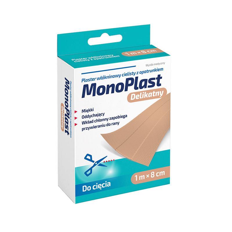 Plaster włókninowy cielisty z opatrunkiem MonoPlast Delikatny to dyskretna ochrona wrażliwej skóry. Miękka, hipoalergiczna włóknina przepuszcza powietrze.