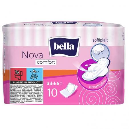 Podpaski Bella Nova Comfort z osłonkami bocznymi i włókniną Softiplait. Oddychające i bezzapachowe, zapewniają poczucie suchości. Pakowane indywidualnie.