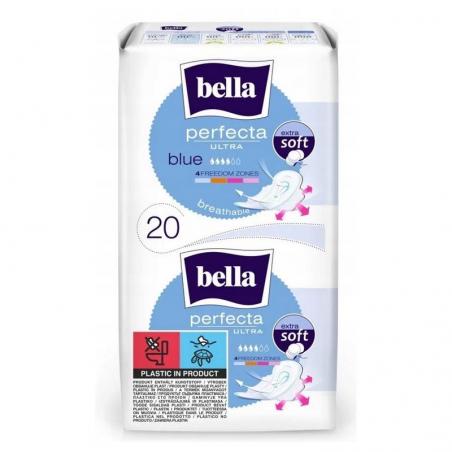 Bella Perfecta Ultra Blue to oddychające podpaski z włókniną Extra Soft. Zapewniają wysoką chłonność, neutralizują zapach i chronią przed przeciekami.