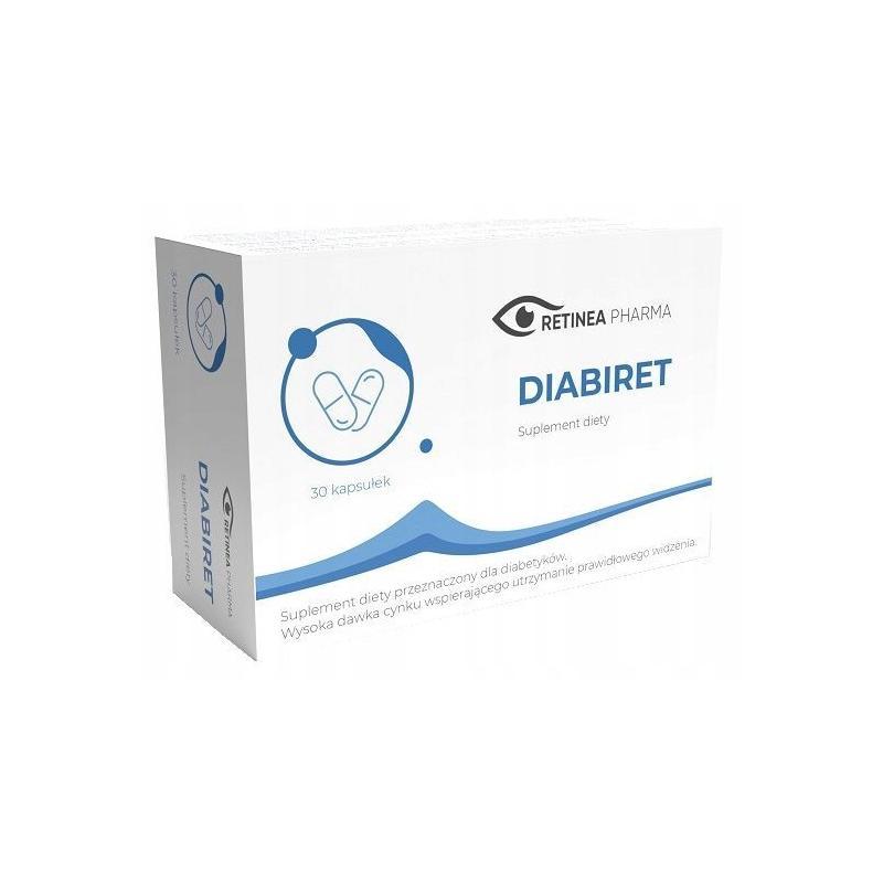 Retinea Pharma Diabiret - to suplement diety w postaci kapsułek, którego składniki wspierają prawidłowe widzenie. Produkt przeznaczony dla osób dorosłych.