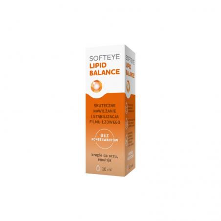 Softeye Lipid Balance to wyrób medyczny w postaci lipidowej nanoemulsji bez konserwantów, który natychmiast łagodzi suchość, podrażnienie i pieczenie oczu. Zaawansowana formuła z kwasem hialuronowym, olejem rycynowym i witaminą E odbudowuje lipidową warstwę filmu łzowego, chroni przed parowaniem i jest idealna dla osób pracujących przy ekranie oraz noszących soczewki kontaktowe.