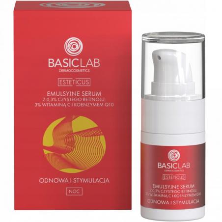 BasicLab Emulsyjne serum z 0,3% czystego retinolu, 3% witaminą C i koenzymem Q10, 15 ml