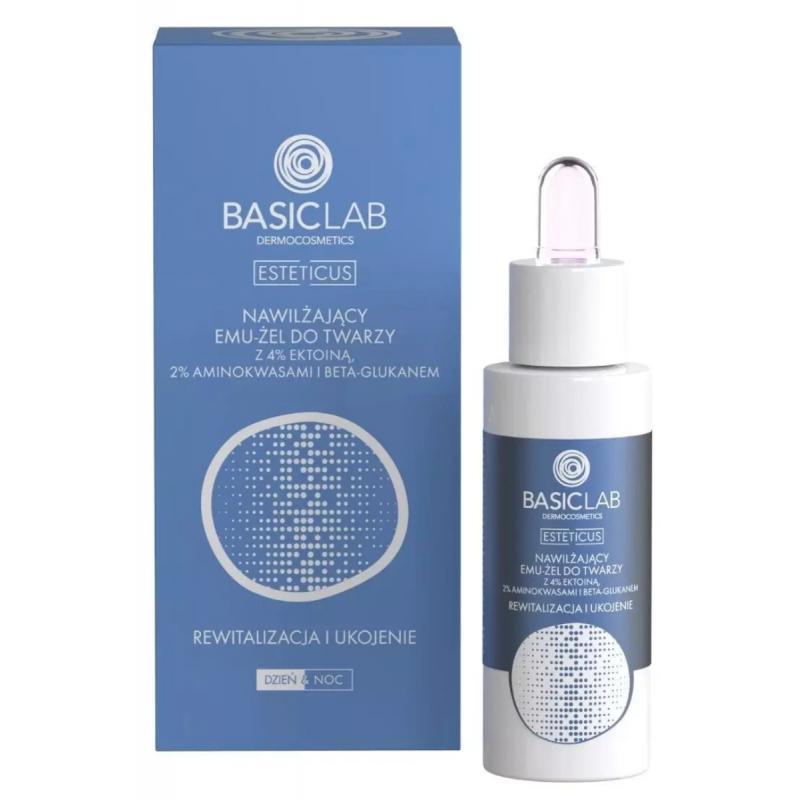 BasicLab Emu-żel z 4% ektoiną. Beta-glukan i aminokwasy to składniki, które regenerują barierę ochronną. Zyskaj głębokie nawilżenie i ukojenie.