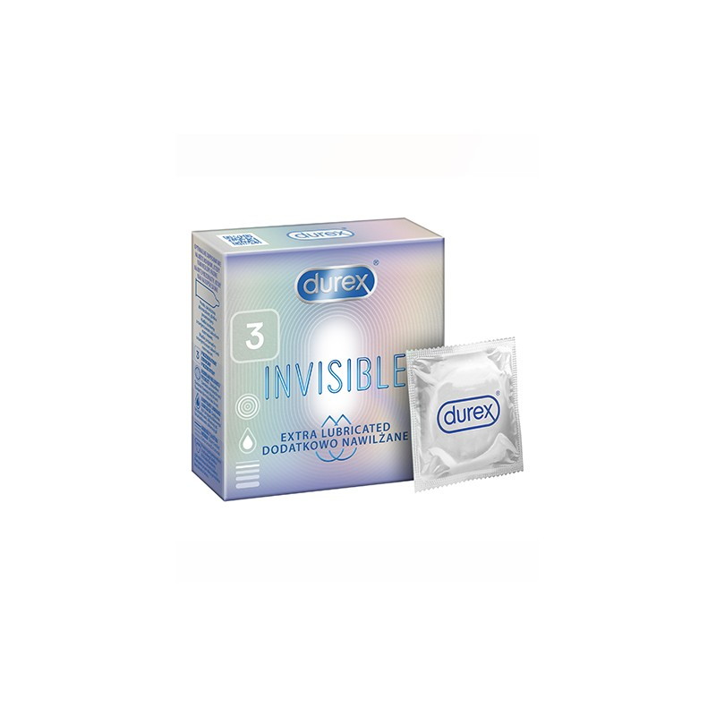 Durex Invisible, prezerwatywy dodatkowo nawilżane, 3 sztuki