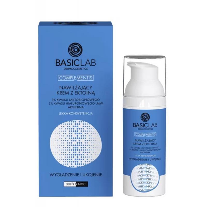 BasicLab Nawilżający krem z ektoiną. Ektoina łagodzi podrażnienia. Kwas laktobionowy wygładza skórę. Poczuj nawilżenie bez wyczuwalnego filmu.