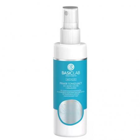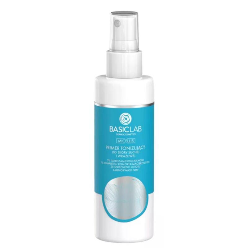 BasicLab Primer tonizujący. Glikozaminoglikany i kwas hialuronowy głęboko nawilżają skórę suchą. Zyskaj gładkość i przygotuj cerę na dalszą pielęgnację.