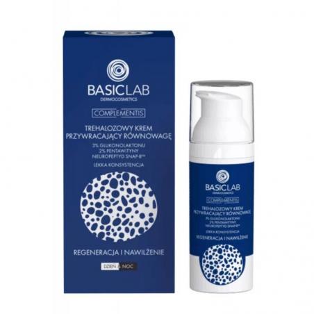 BasicLab Trehalozowy krem lekki. Glukonolakton wygładza skórę. Trehaloza intensywnie nawilża. Poczuj komfort bez tłustej warstwy.