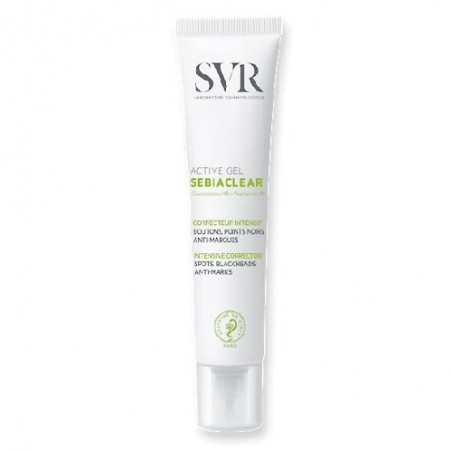 SVR Sebiaclear Active Żel intensywnie korygujący ogranicza ilość niedoskonałości, działa przeciwzapalnie i rozjaśnia przebarwienia oraz wspiera barierę naskórkową. Preparat przeznaczony jest do pielęgnacji skóry wrażliwej, trądzikowej, także jako uzupełnienie leczenia w przypadku ciężkiego trądziku.
