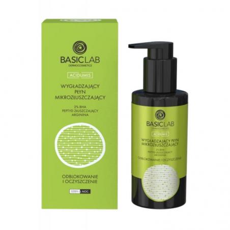 BasicLab Płyn mikrozłuszczający. Kwas salicylowy oczyszcza pory. Tripeptyd wygładza naskórek. Arginina nawilża. Zyskaj redukcję zaskórników i sebum.