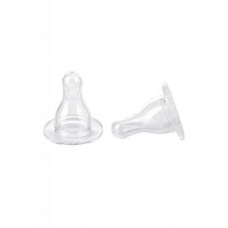 Silikonowy okrągły smoczek o przepływie średnim pasuje do butelek wąskich. Doskonale odpowietrza się i nie zlepia podczas karmienia. Wykonany został z wysokiej jakości silikonu. Nie ma smaku ani zapachu. Przystosowany jest do wielokrotnej dezynfekcji. Przeznaczony dla dzieci w wieku 6-12 miesięcy. W opakowaniu 2 sztuki.