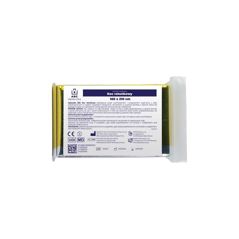 Koc ratunkowy chroni przed wychłodzeniem i przegrzaniem. Niezbędne wyposażenie apteczki samochodowej. Srebrna strona przy ciele pomaga utrzymać ciepło.