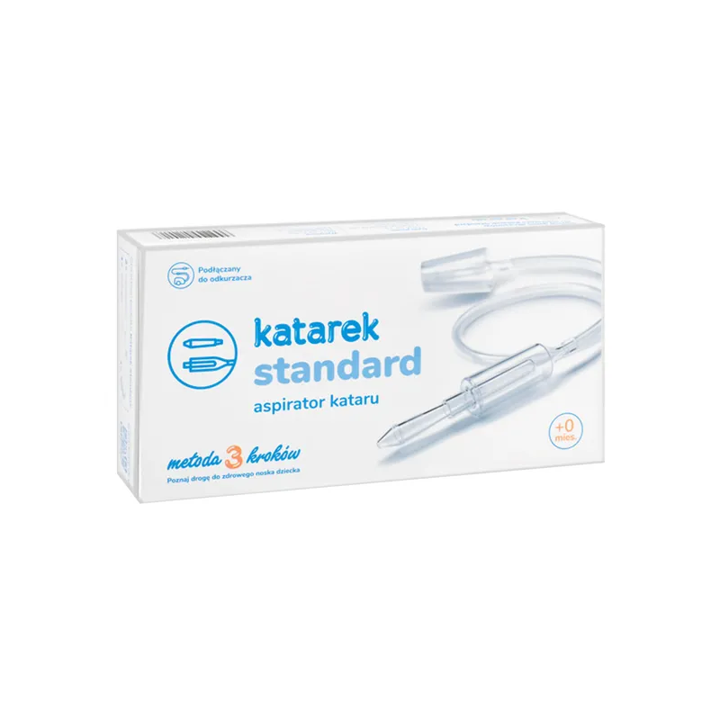 Katarek Standard to bezpieczny i higieniczny wyrób medyczny przeznaczony dla niemowląt, dzieci, a także osób niepełnosprawnych i obłożnie chorych. Urządzenie pozwala na szybkie i skuteczne usunięcie zalegającej wydzieliny z nosa.