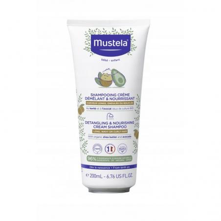 Odżywczy szampon Mustela to wegański kosmetyk dla dzieci i niemowląt od 1. dnia życia, którego 96% składników pochodzenia naturalnego ułatwia rozczesywanie włosów długich, falowanych i kręconych. Formuła z masłem shea i awokado delikatnie oczyszcza, odżywia oraz pozostawia włosy pachnące i łatwe do rozczesania.