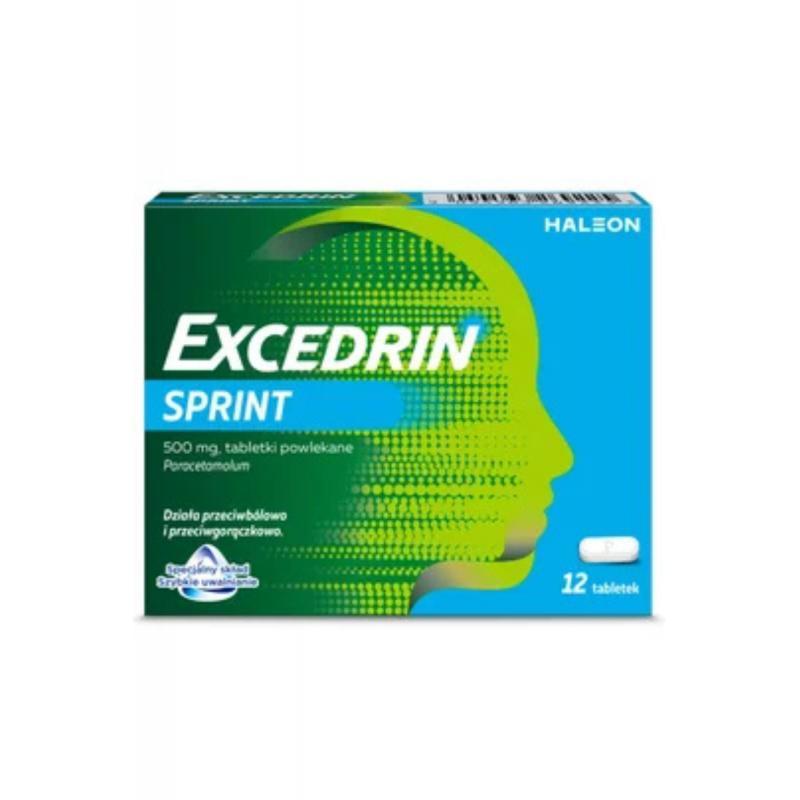 Excedrin Sprint to lek dostępny bez recepty, który zawiera paracetamol – substancję o działaniu przeciwbólowym i przeciwgorączkowym. Preparat stosowany jest w różnych rodzajach bólu, takich jak ból głowy, migrena, napięciowe bóle mięśni, bóle zębów, nerwobóle, bóle kręgosłupa, kostne, stawowe i mięśniowe, a także w przypadku bolesnego miesiączkowania czy bólu gardła. Excedrin Sprint znajduje również zastosowanie w objawowym leczeniu bólu towarzyszącego łagodnym stanom zapalnym stawów, jak i w łagodzeniu dolegliwości bólowych oraz gorączki podczas przeziębienia i grypy.