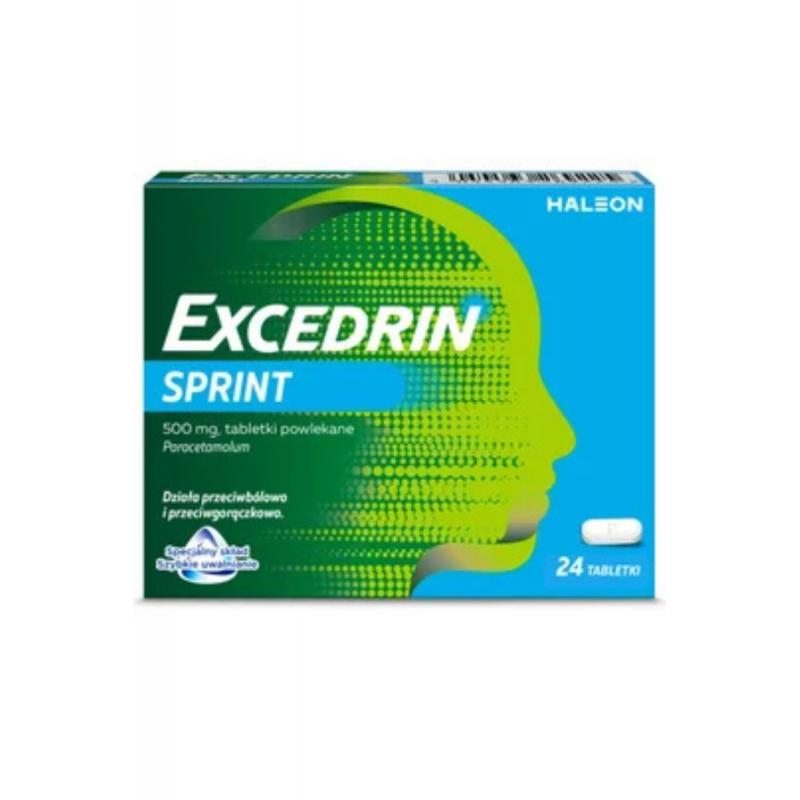 Excedrin Sprint to lek dostępny bez recepty, który zawiera paracetamol – substancję o działaniu przeciwbólowym i przeciwgorączkowym. Preparat stosowany jest w różnych rodzajach bólu, takich jak ból głowy, migrena, napięciowe bóle mięśni, bóle zębów, nerwobóle, bóle kręgosłupa, kostne, stawowe i mięśniowe, a także w przypadku bolesnego miesiączkowania czy bólu gardła. Excedrin Sprint znajduje również zastosowanie w objawowym leczeniu bólu towarzyszącego łagodnym stanom zapalnym stawów, jak i w łagodzeniu dolegliwości bólowych oraz gorączki podczas przeziębienia i grypy.