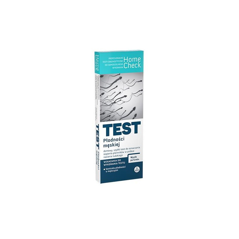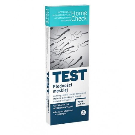 Home Check Test Płodności męskiej to wyrób medyczny w postaci testu diagnostycznego, który można wykonać samodzielnie (np. w domu). Określa stężenie plemników w nasieniu mężczyzny. Test pozwala określić czy ich ilość znajduje się poniżej lub powyżej normy.