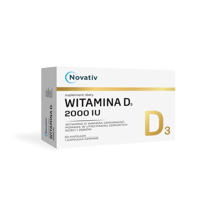 NOVATIV Witamina 03 2000 IU to suplement diety zawierający w swoim składzie witaminę D (cholekalcyferol).