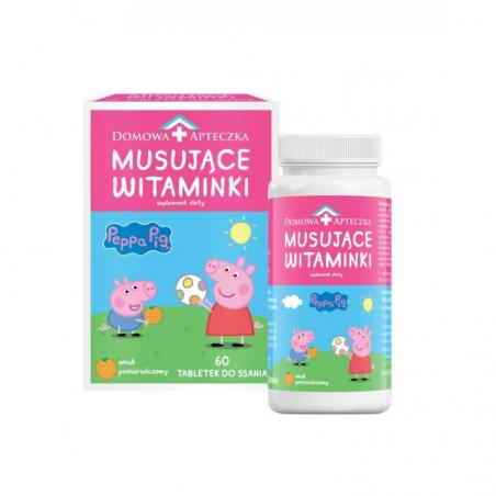 Musujące Witaminki z Domowej Apteczki to suplement diety w postaci tabletek do ssania o smaku pomarańczowym, będący zestawem 11 witamin (C, E, B1, B2, B6, B12, D, niacyna, kwas pantotenowy, kwas foliowy, biotyna), wzbogaconych o wapń.