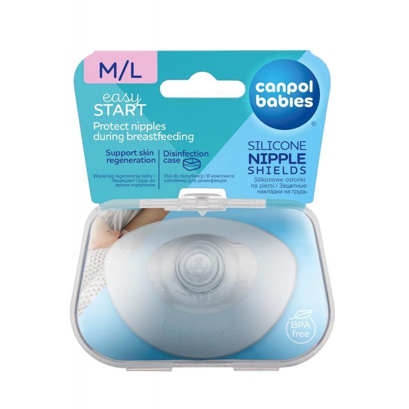 Canpol Easy Start to silikonowe osłonki na piersi, które wspierają bezbolesne karmienie i wspierają regenerację obolałych i popękanych brodawek sutkowych. Zestaw zawiera dwie osłonki w rozmiarze M/L oraz etui do sterylizacji. Produkt jest przeznaczony dla kobiet karmiących.