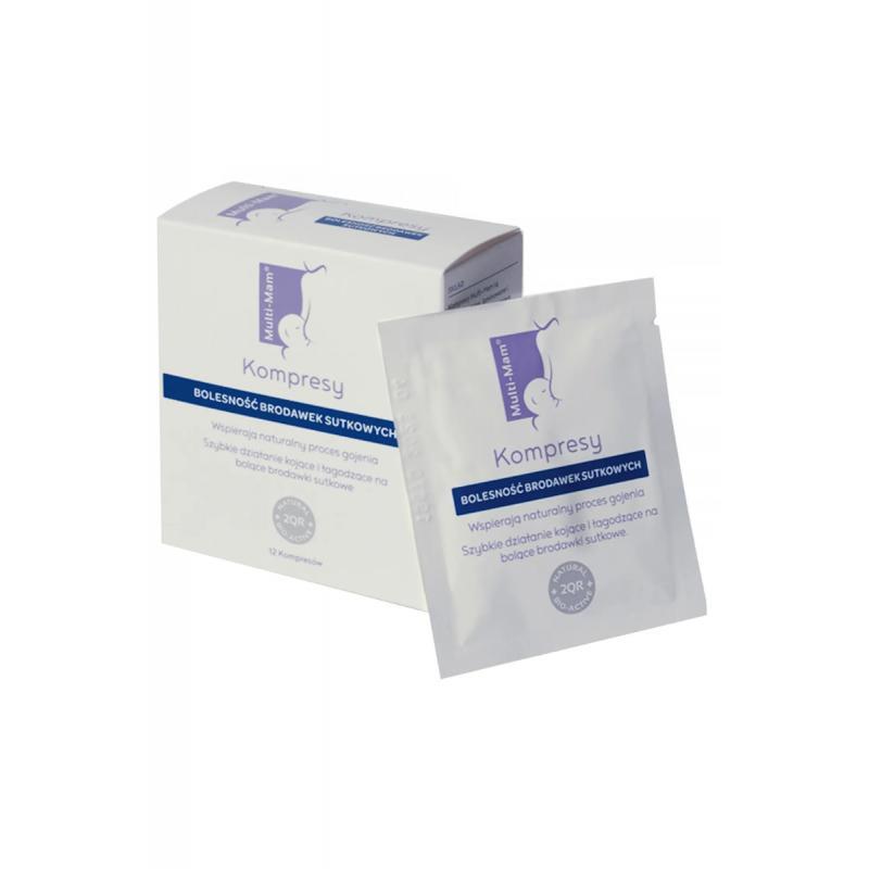 Kompresy Multi-Mam® do intensywnej pielęgnacji sutków matek karmiących są niewchłaniane i laminowane. Pakowane są pojedynczo, a opakowanie zawiera 12 sztuk. Produkt jest naturalny, bezpieczny do stosowania oraz nieszkodliwy. Nie zawiera w składzie konserwantów. Stosowany bezpośrednio na brodawki sutkowe skutecznie łagodzi ich podrażnienia. Cienka powłoczka po jednej stronie kompresu, zabezpiecza biustonosz przed pojawianiem się na nim plam.